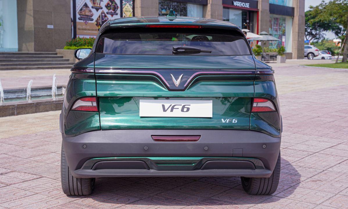 Tiến về phía đuôi VinFast VF6 chúng ta tiếp tục bắt gặp những điểm thiết kế mang tính nhận diện thương hiệu ô tô Việt như dải LED đỏ tạo hình chữ V lớn, trải rộng sang hết 2 bên hông xe.