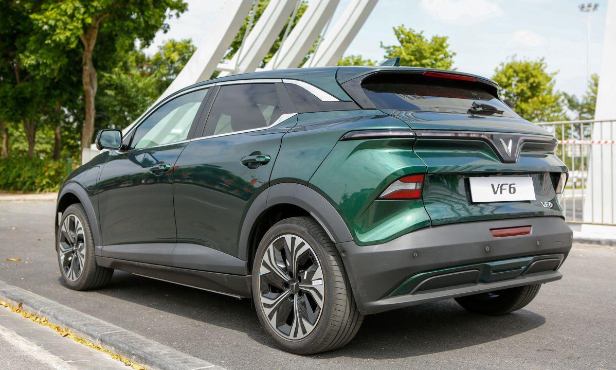 Cụm đèn lùi và đèn xi-nhan đặt thấp giống như “đàn em” VF5. Ăng-ten vây cá màu đen bóng thể thao, hiện đại.