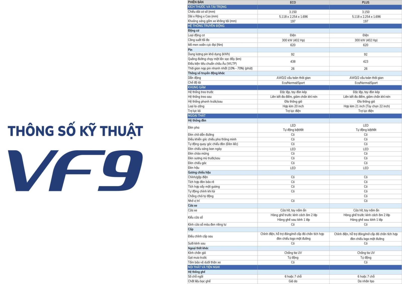 VF 9 điều hòa 2 vùng ECO Kèm Pin (LIMIT): 1.665.000.000 đ